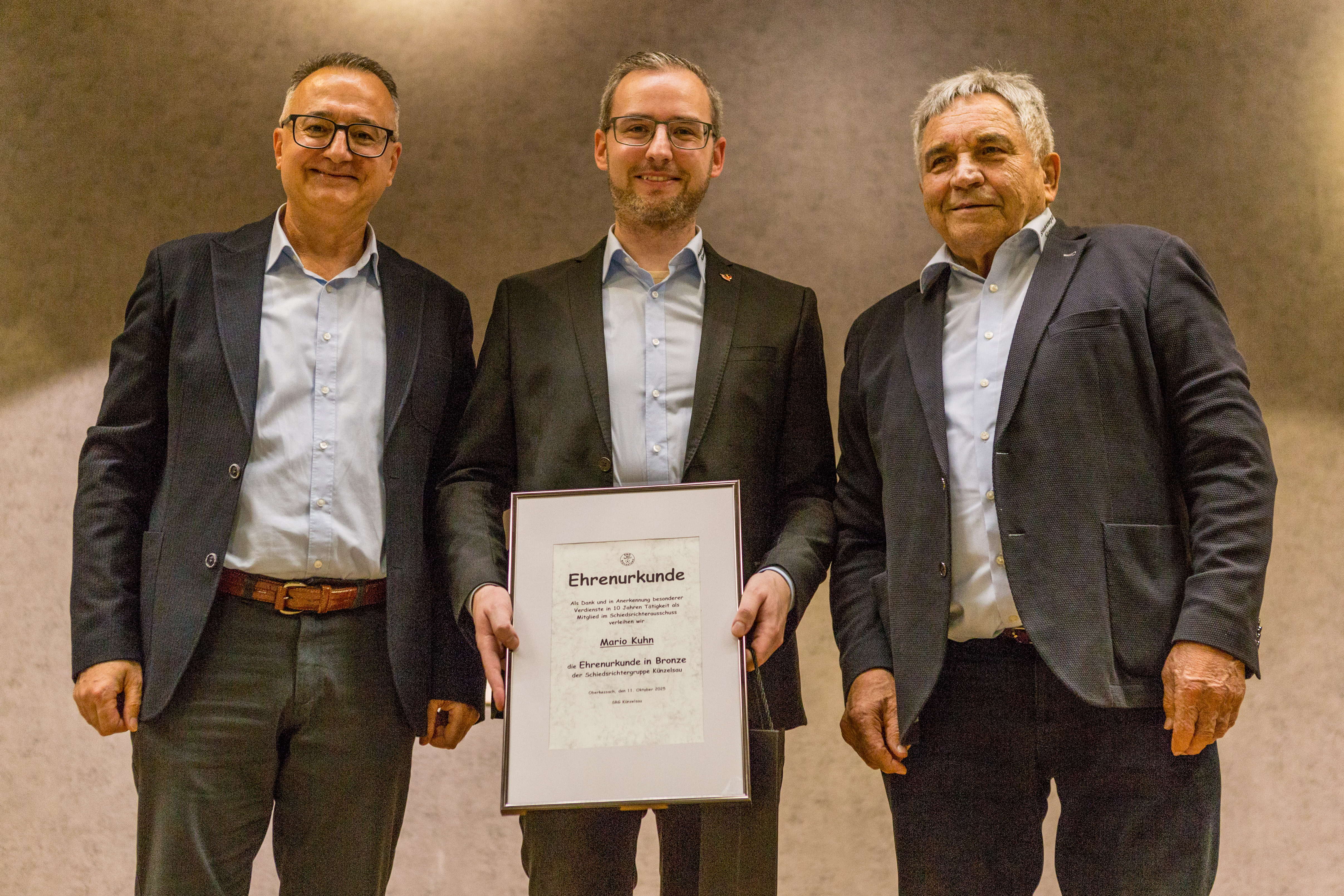 Die besondere Wertschätzung für die Arbeit in der SRG Künzelsau wurde durch die Anwesenheit von Michael „Max“ Keller vom Verbandsschiedsrichterausschuss unterstrichen. Er war eigens angereist, um Obmann Mario Kuhn die WfV-Ehrennadel in Bronze sowie die SRG Ehrenurkunde in Bronze für seine Ausschusstätigkeit zu verleihen.